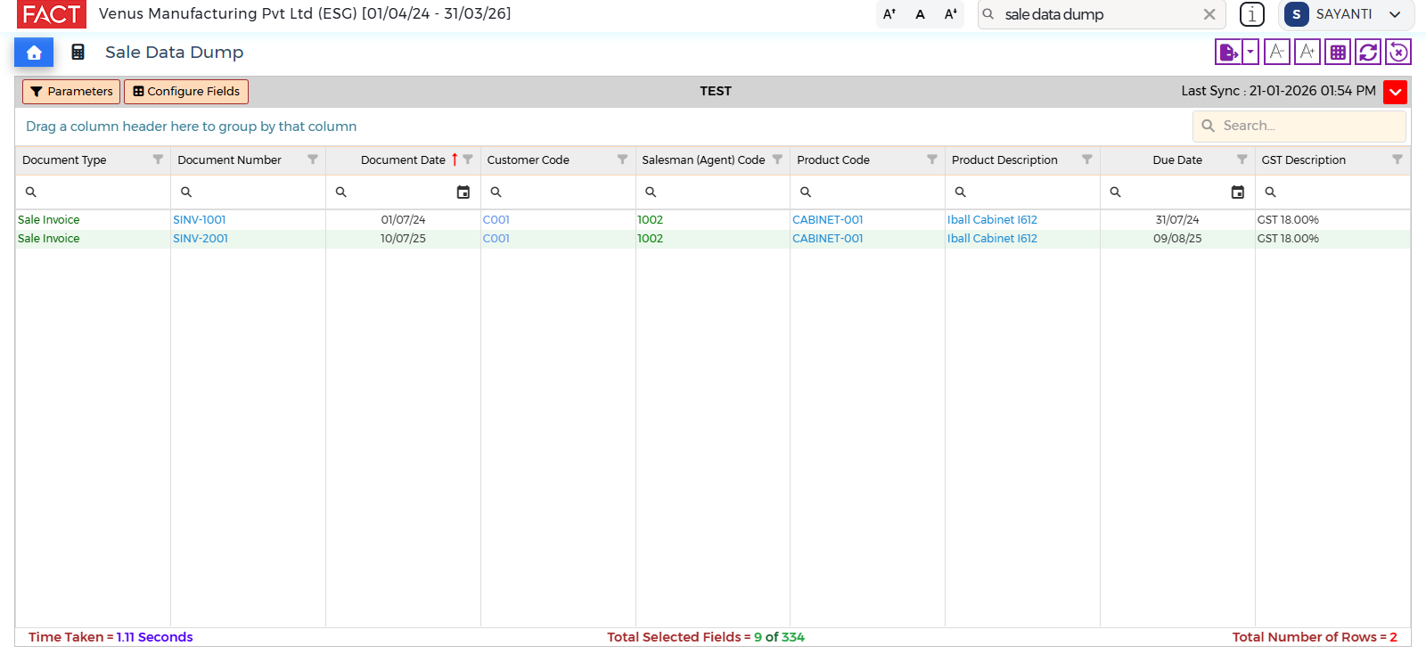 - Sale Invoice Date