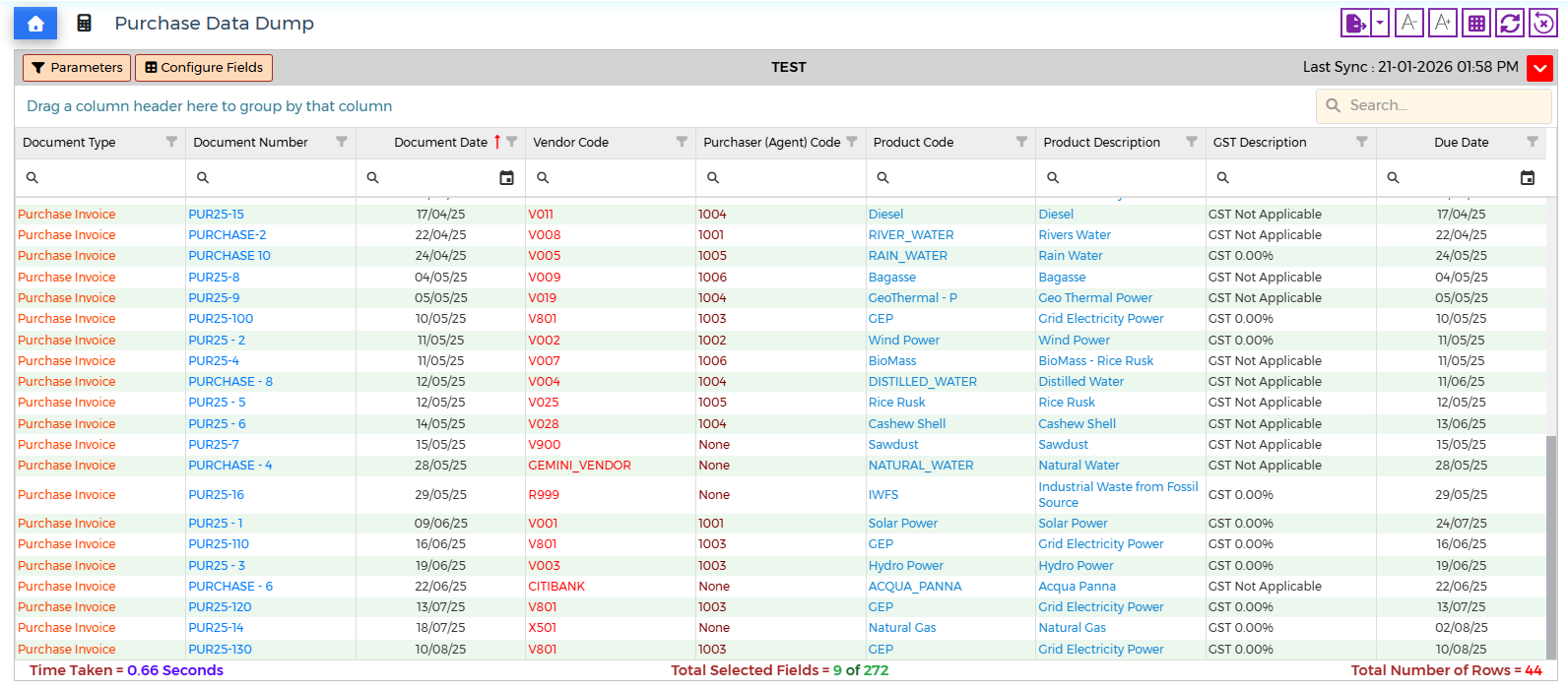 - Purchase Invoice Date