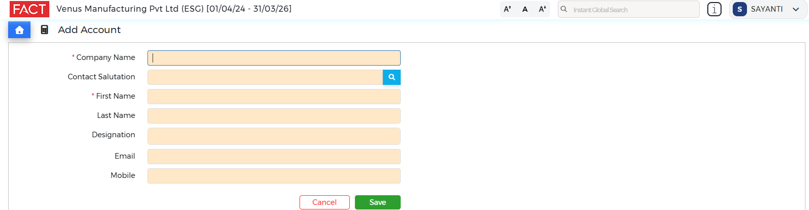 - New Contact (example: Name, Designation, Email Address & Mobile Number etc)